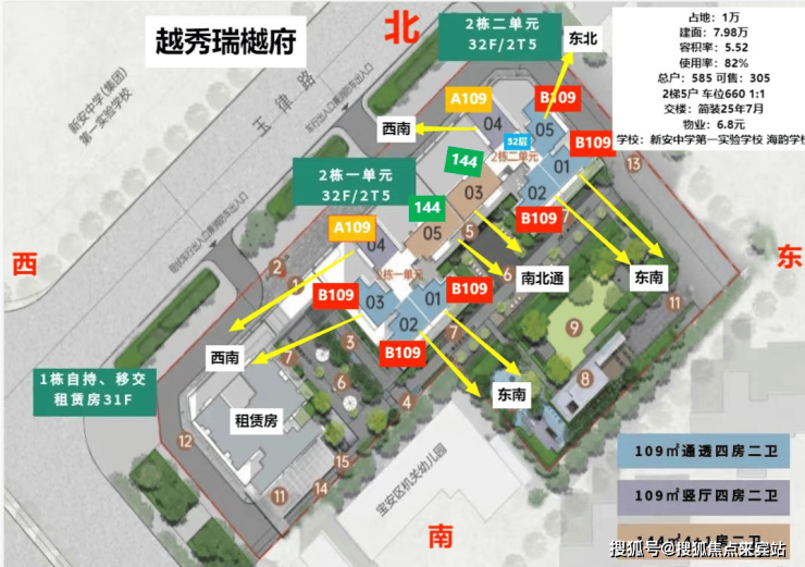 「越秀瑞樾府」小区地块不大,有两栋32F高层住宅305套和一栋保障房(含移交政府租赁56套 & 企业自持租赁224套)。其中住宅分布在2-1栋和2-2栋,为每层2梯5户的设计。