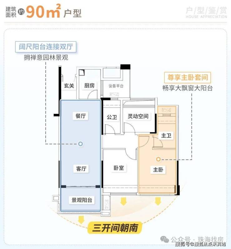 90㎡經典戶型 三開間均朝南 成長家庭優選