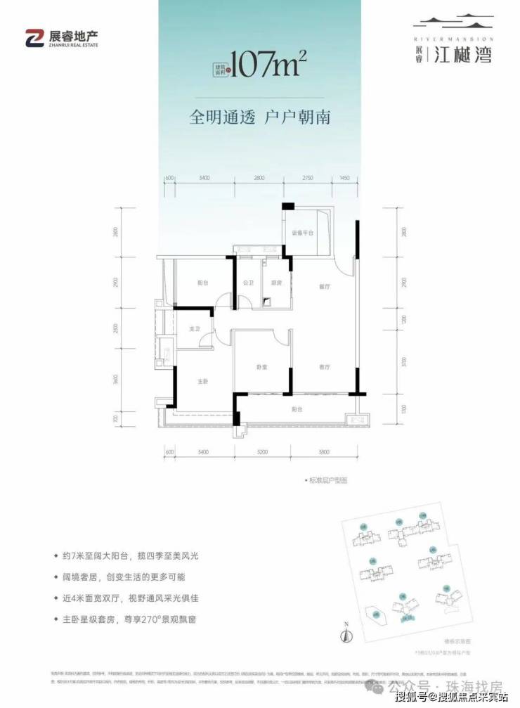 107㎡超高使用率四房 南向瞰江 近7米大陽台