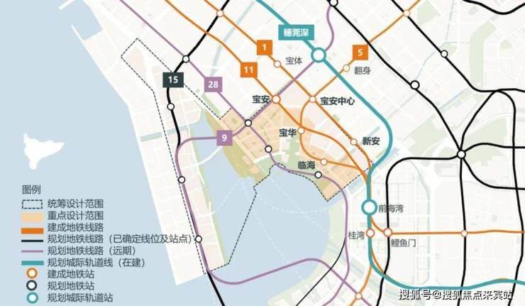 现有地铁1号线、5号线、11号线已开通运营,并在规划区内设有5个地铁站 —— 宝安中心站、新安站、宝安站、宝华站和临海站。