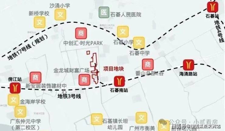 距3号线的石基南站约500米,2站番禺广场;通过3号线无需换乘直达珠江新城,无缝对接18/22号线,实现3站万博CBD,4站广州南、琶洲CBD,5站珠江新城,半小时链接市中心,一小时畅行湾区。