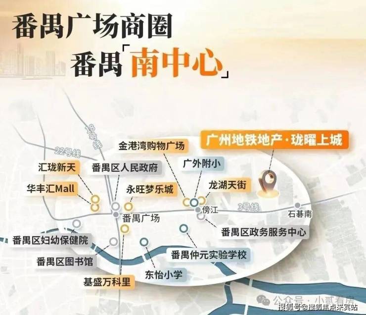 依托3号线半小时共享广州黄金三角CBD+万博CBD+南沙CBD商圈配套;商圈金脉之上,串联万亿CBD及繁华都市商圈。