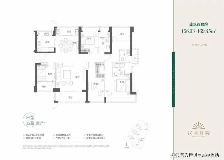 169㎡5房2厅3卫:各1条腿,位于1栋5单元朝南向看外景,双阳台南北通设计,双套房