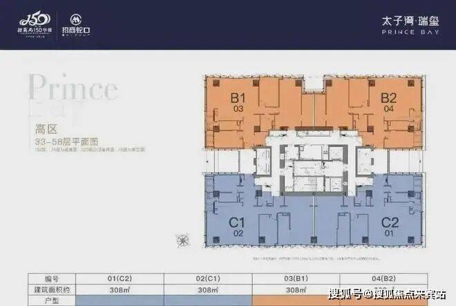 户型分布在高区33-47层,4个户型朝向,也可以两套打通做620㎡大户型,东南跟西南主要看海景,西北跟东北斗可以看部分海景+大小南山景观
