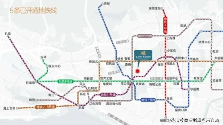 双地铁口,1号线香蜜湖站步行约500米,9号线香梅站步行约640米。在这两个站点乘车1-2站可达车公庙、景田、购物公园、会展中心换乘站,便捷换乘2/8号-3号-4号-7号-11号线。1.5公里范围内有深南大道、香蜜湖路、新洲路等城市主干道,深南大道连接罗湖、福田、南山、前海核心区,自驾出行也非常方便。另外,项目步行1200米可达地铁五期在建的22号线香蜜西站。22号线誉为"科技金融大动脉",直连香蜜湖新金融中心与河套两大引擎。