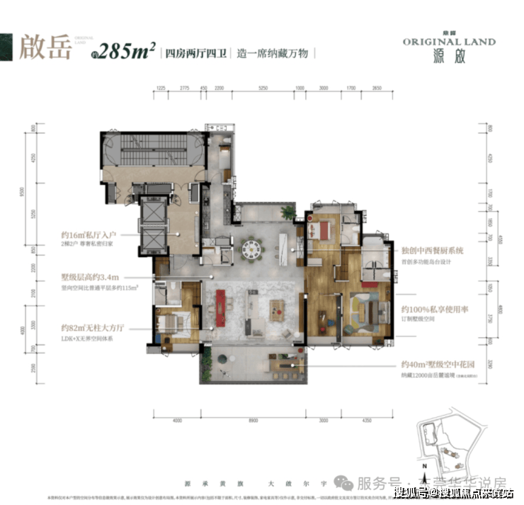 285 平户型优点是空间开阔,含 8.9 米大开间方厅、独特三阳台,布局合理有私梯入户,配置高端品牌产品,周边教育资源优、自然景观美;缺点为有公卫位置差、暗卫多、户型缺角、北阳台鸡肋、次卧套动线不佳等问题。