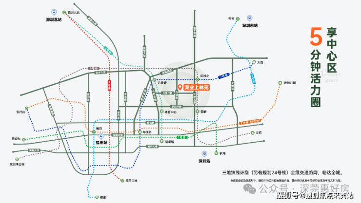 近享福田成熟交通配套,4地铁线环绕(地铁6、7、9号线,另有规划24号线),畅达全城。3口岸、5高铁站,多条城市主干道,全维交通路网,多方式通达全城与香港,打造湾区半小时生活圈,深港双城无缝衔接。