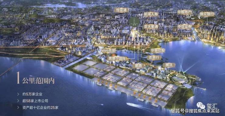 项目1公里范围内约5万家高新企业,58家上市公司,腾讯、前海人寿、VIVO总部等名企林立,资产超10亿企业约25家。