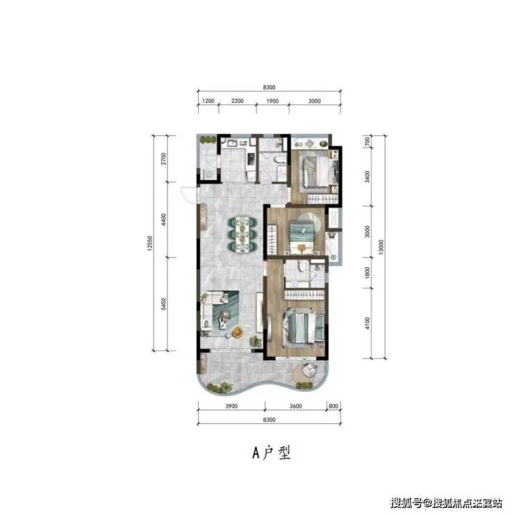 ▼“A”户型图约125㎡三室两厅两卫▼