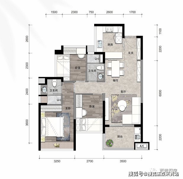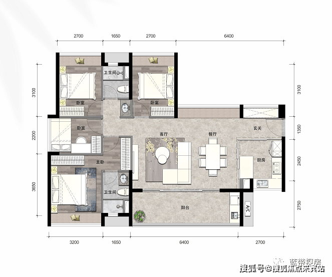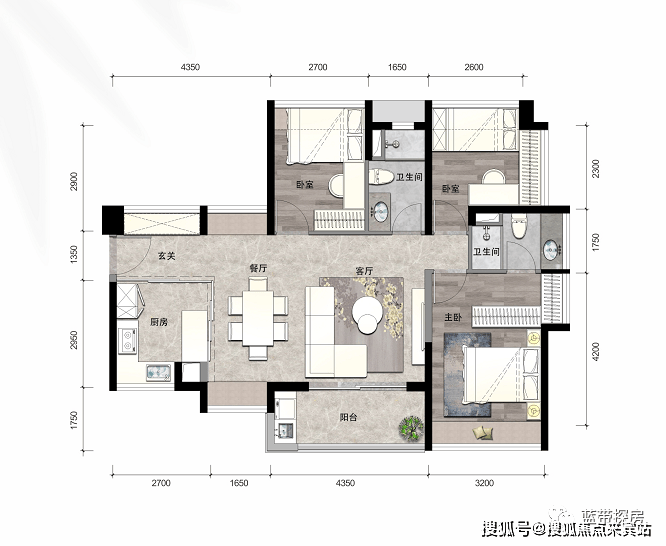 1、幸福三房,尺度宽阔有序,承载更多欢乐