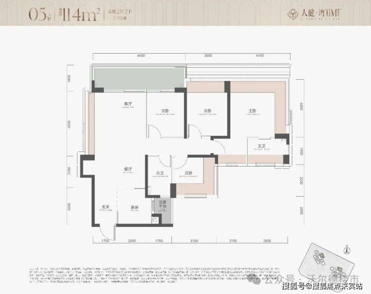 建面约114㎡四房户型是113㎡户型的镜像版,格局一模一样。