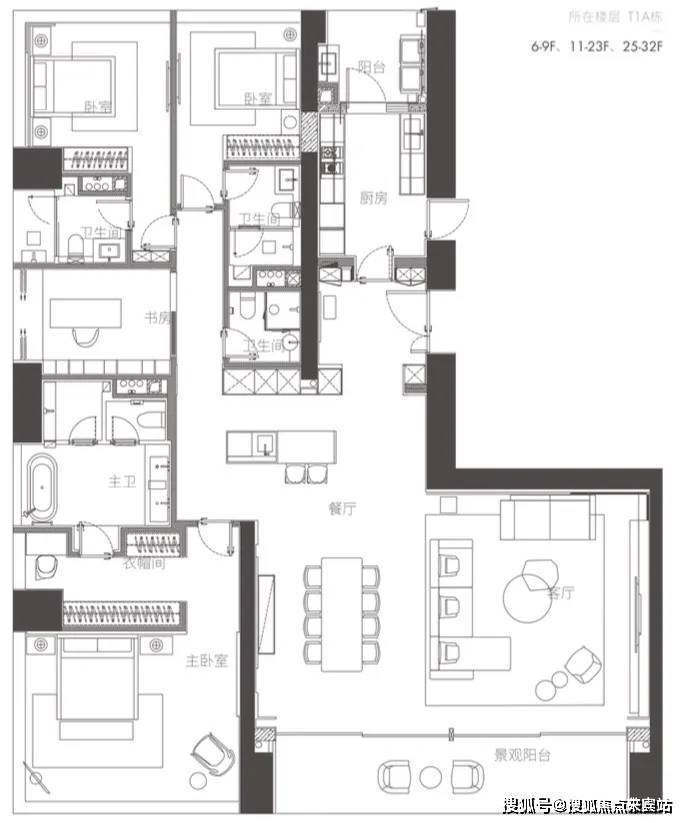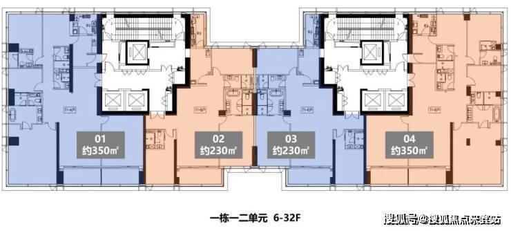 04户型 东端户 约350㎡ 四房两厅四卫(01、04镜像对称)
