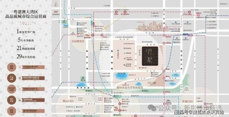 ①双枢纽(深圳北站+五和站),1小时无缝对接大湾区;五和站城际枢纽,5/10号线及规划中的深大、深惠、深广中轴城际。