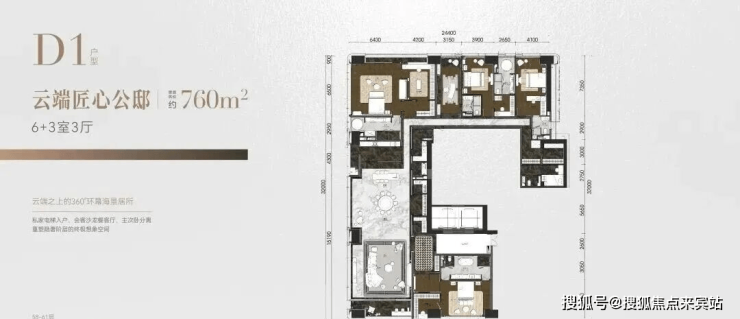 ◎建面约760㎡ 6+3室3厅,云端匠心公邸