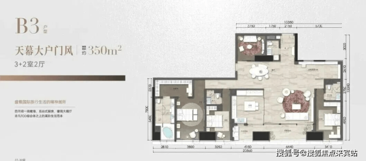◎建面约350㎡ 3+2室2厅,天幕大户门风