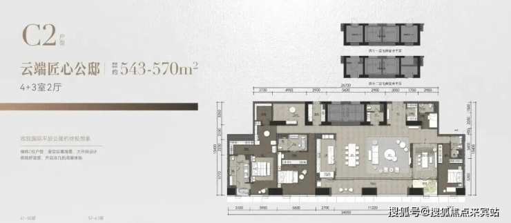 ◎建面约543~570㎡ 4+3室2厅,云端匠心公邸