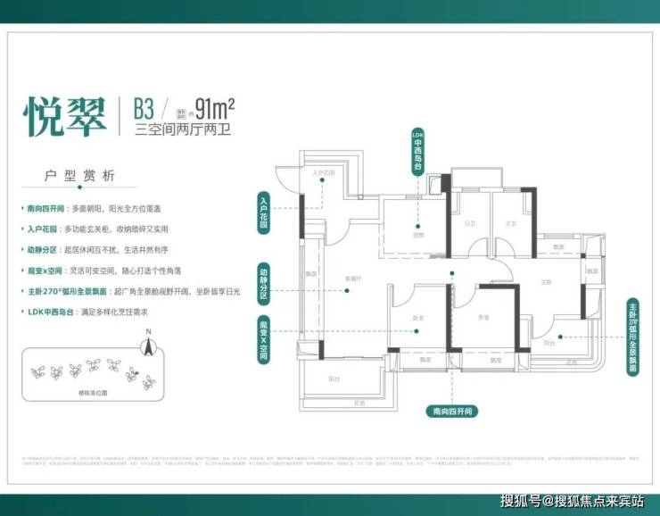 建面约91㎡/三空间两厅两卫