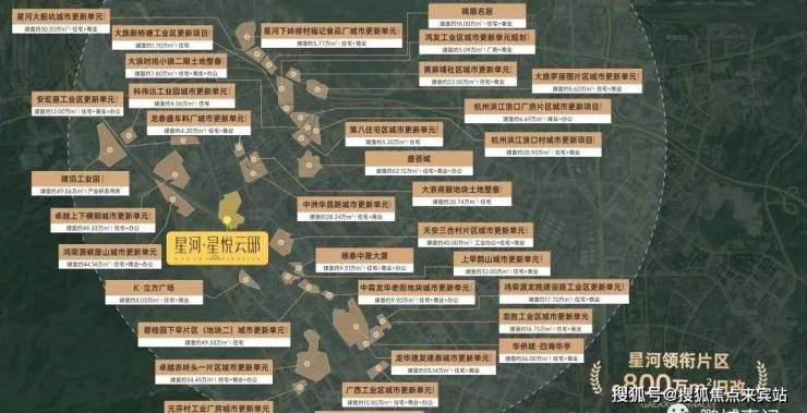 "星河领衔旧改,品牌开发商齐聚,更新片区超800万㎡。星河、华润、鸿荣源、华侨城、卓越等一线品牌发展商聚集,旧改旗舰环绕,享受城市更新头排利好,城市未来迭新。"