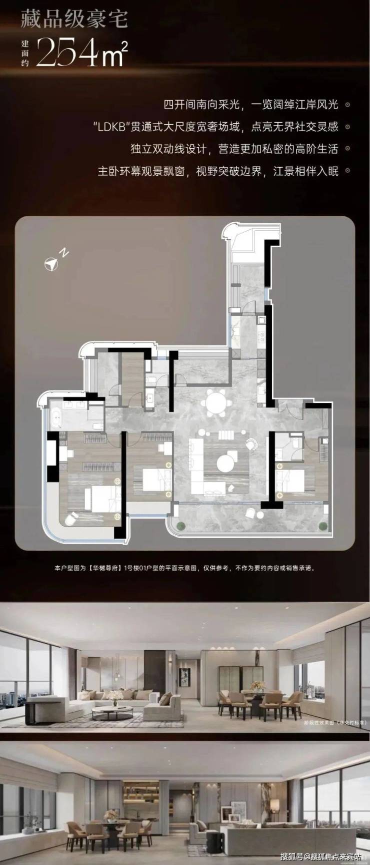 • 253㎡:五开间朝南,270°环幕阳台,LDKB一体化空间布局。