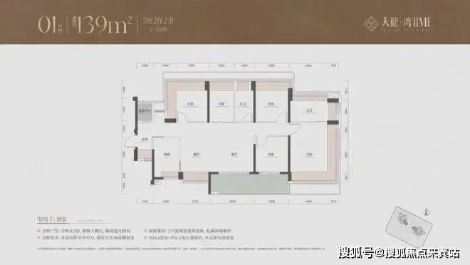139平4房户型,同样以朝南、西南朝向为主,能够享受良好的采光和海景、山景资源。
