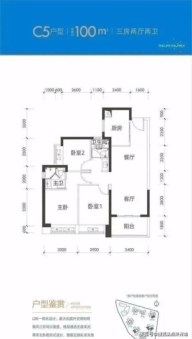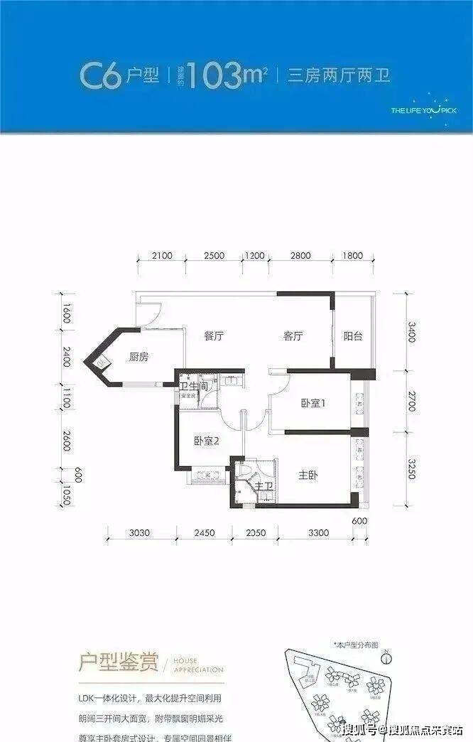 约100-107平的三房户型,三开间全部朝南,通风采光无死角,尽享阳光的宠溺。