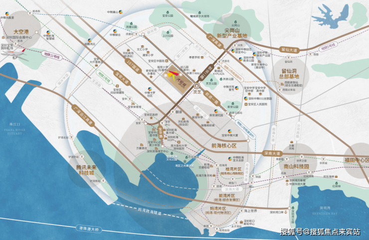 陆:连接创业路、宝安大道、广深高速、沿江高速、107国道等城市主干道,15分钟直达南山中心、30分钟畅行福田CBD,构建湾区高效流动都市圈