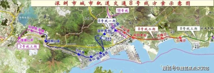 三、枢纽核——三地铁双口岸 便捷城市路网【轨道交通】:项目与8号线沙头角站直线距离约600米,海山站直线距离约1公里,1站直抵罗湖,8站直达福田CBD;且未来有18号线(规划中),本项目紧邻规划站点沙头角口岸站;