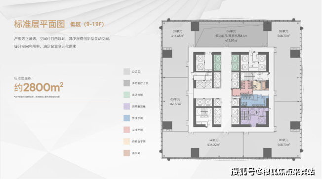 满足租户总部大堂设计使用需求,并附赠核心筒额外空间,展示公司形象,彰显公司实力