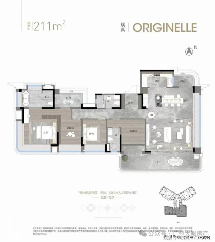 230平户型拥有私家电梯厅、双主套、独立佣人房、南北对流、LDKB大方厅、主卧L型270°飘窗等,大大提升了整体的空间体验。