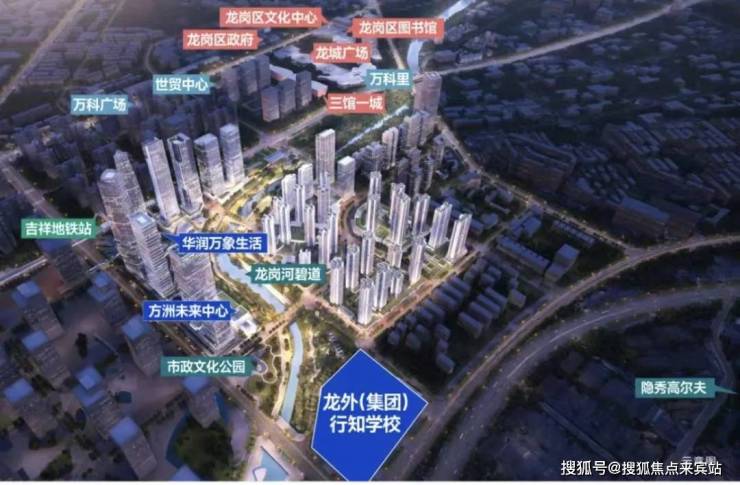 项目规划约80万㎡高端产业办公及总部商务集群,涵盖甲级写字楼、产业研发空间,形成智慧型创意产业都心。周边聚集千余家国家级高新技术企业,依托龙岗五大产业板块(国际科教城、大运北科创城等),打造产城融合示范区。