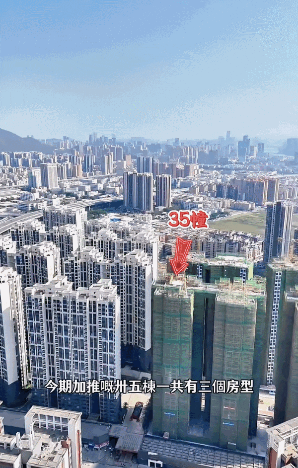 项目加推35栋新品,两梯五户,有约91㎡三房、约102/110㎡3+1户型,带装修交付,预计2026年12月31日交楼。