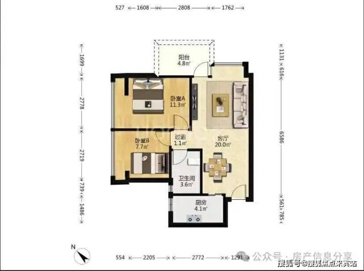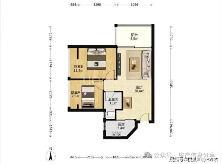 太古城南区62㎡的户型实际套内实用面积在51㎡左右,精致的小两房设计。