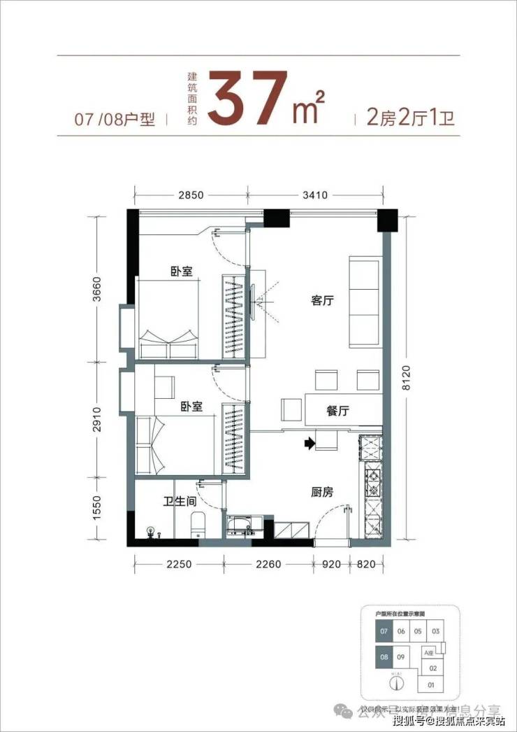 主力为37㎡两房,实际室内实用面积54-63㎡,实际使用率达145%-170%