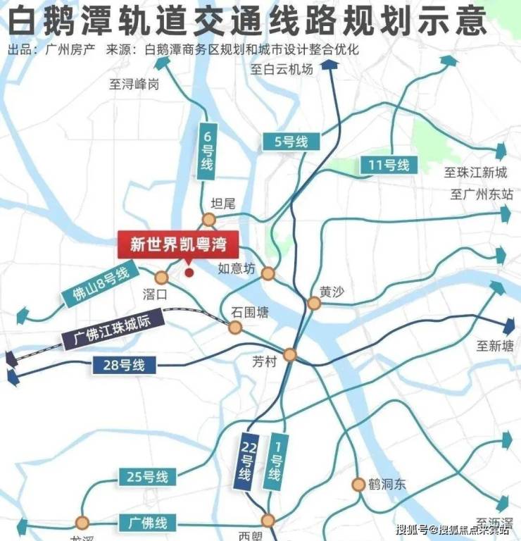 同时未来,广州首个四地铁交汇的枢纽白鹅潭站落成,1、11、22、28号四地铁交汇,还将联通佛山、深圳、东莞等湾区城市。