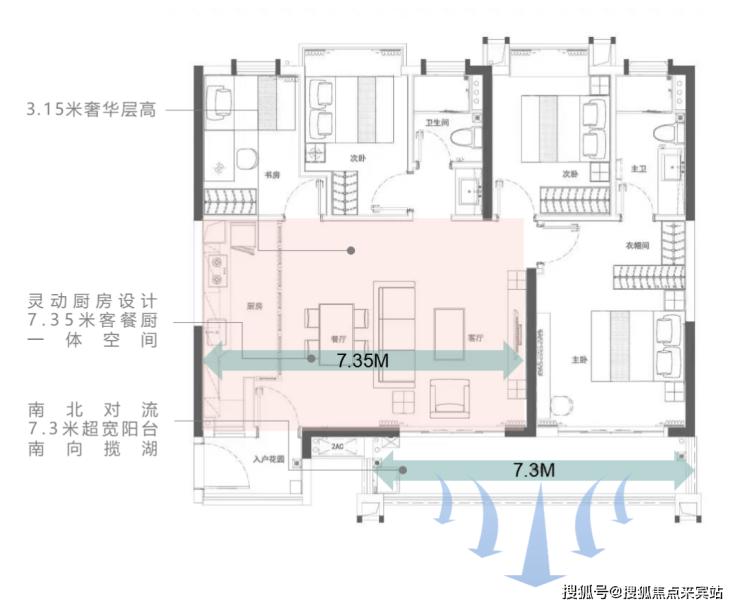 广地花园·观灏,精心考究建筑与空间的朝向布局,筑就建面约162㎡奢华湖景双主套五房,适配全龄段买家,一家三代人都能拥有相对独立的空间,理想生活莫过于此。
