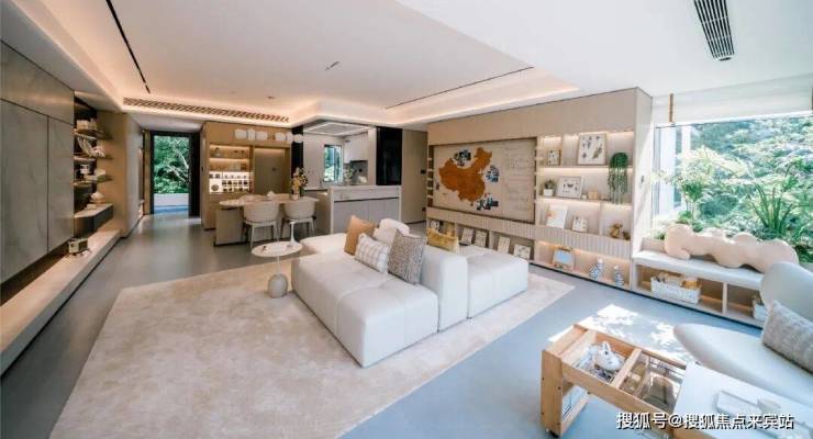 信达·繁花里萃取余荫山房的园林造景灵韵,糅合现代高奢酒店的简约笔触,打造高约9M的奢华归家门庭,配合荟萃了岭南美学的繁花艺术体验中心,为每一位归家的业主,打造尊崇的归家体验。社区外享约 2730㎡滨水公园与约 4512㎡繁花逸园,内拥逾1.5万㎡中央园林,以“三重归家礼序”铺陈,让业主每一步都是穿越风景的旅程。