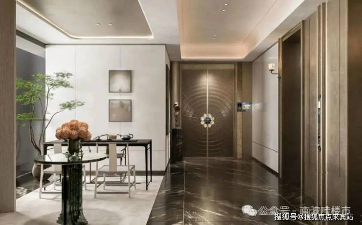 至奢楼王臻品 双梯一户 :采用顶豪专属的双梯一户刷卡归家设计,仪式感从踏入家门的第一刻便极致彰显。