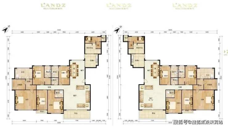 4房(2套房),客厅开间达到6.1米,实际得房率可达95%,不管是得房率还是产品尺度在同类型产品中都占有较大优势。