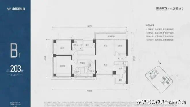 A1有两条腿,分别1-1栋01/02,主朝向是西北向,双龙抱珠格局。