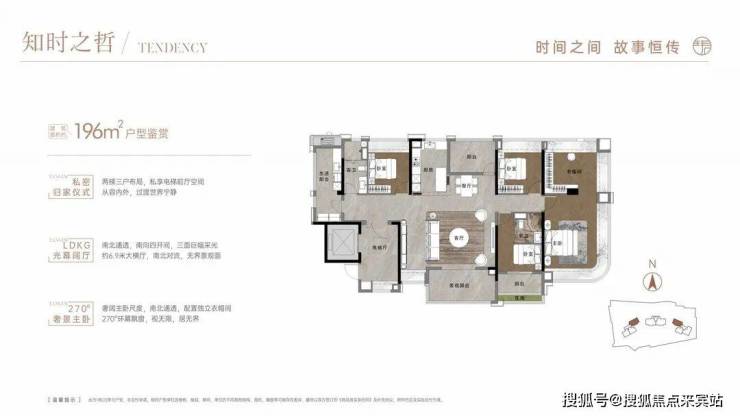 196平户型,做了双主套,客厅、卧室、阳台等开间尺度也比同面积段产品更大。