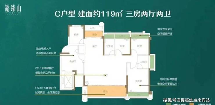 ✔ 119㎡ 南北对流,三房两厅两卫