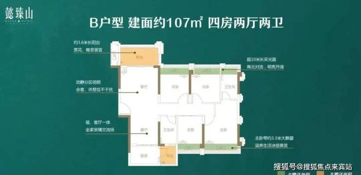 ✔ 107㎡ 南北对流,四房两厅两卫
