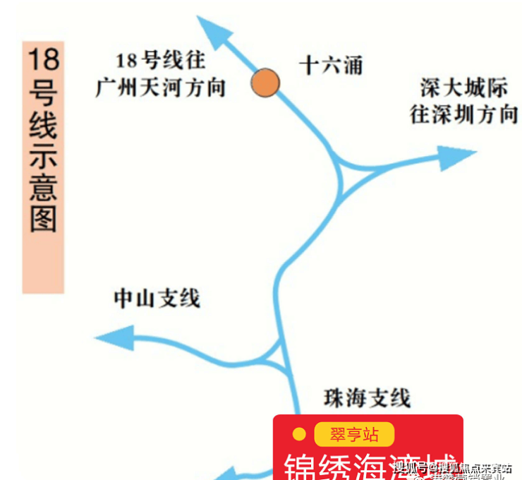 通過18號線,從海灣城項目翠亨站(已建成,待開啟使用)出發,最快30分鐘到珠江新城、40分鐘深圳、5分鐘到珠海。