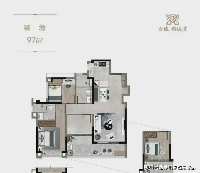 建面约97㎡江园双景臻席,不仅能欣赏花地湾江面卓绝风光,还能俯瞰榕诚公园,以及GVL怡境国际匠心打造的“山林麓畔 隐翠森居”主题大师园林,LDK餐客厨一体设计,约6.5米宽境阳台。