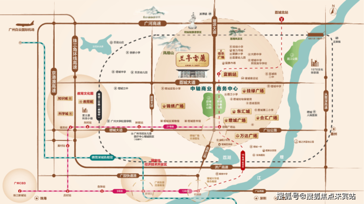 兰亭香麓位于增城荔城,紧邻地铁21号线,兰亭香麓售楼处电话: 400-909-313916号线富鹏站旁,双地铁双驱动无缝瞬达增城广场交通枢纽、增城火车站综合枢纽。