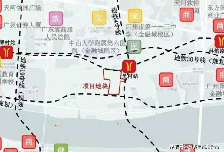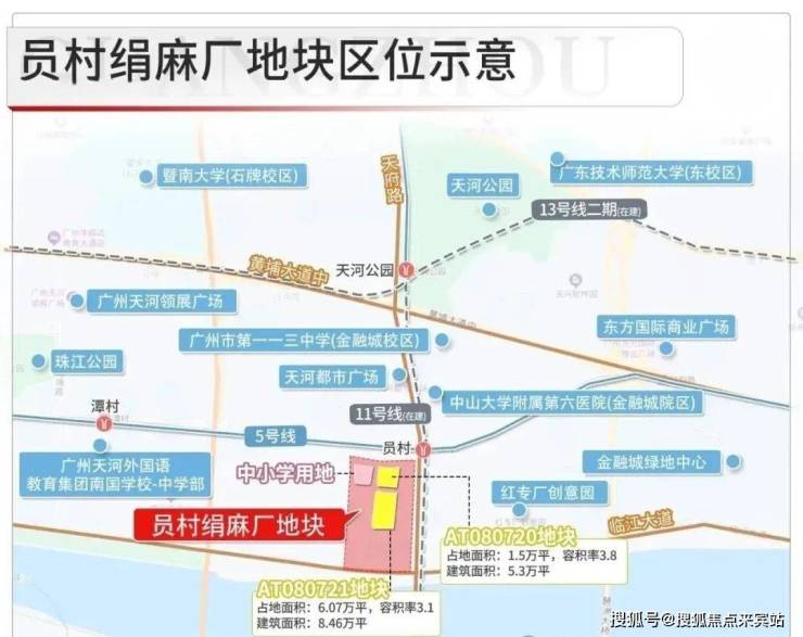 地块东北侧距离地铁5号线与11号线交汇的员村站仅150m,5号线+11号线可以连通广州最核心的几个商务圈---珠城、琶洲、天河北、白鹅潭通达性很强。