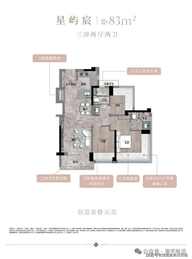 建面约83-133㎡3-4房宸式美学新著,LDKB巨幕方厅,跑道式景观阳台,小家化星级酒店主卧套房,270°环幕全景舱,客厅次卧无剪力墙灵动设计,实现超高实用率,每一户皆是颐安“超新一代作品”的匠心宣言。