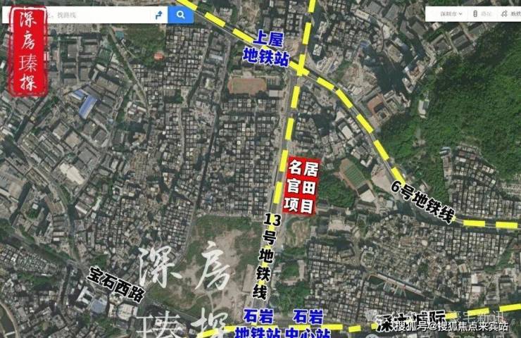 名居云山府原为官田社区土地整备利益统筹项目,位于石岩街道田心大道东侧,处于13号线石岩站和6号线和13号线双地铁交汇的上屋站之间。