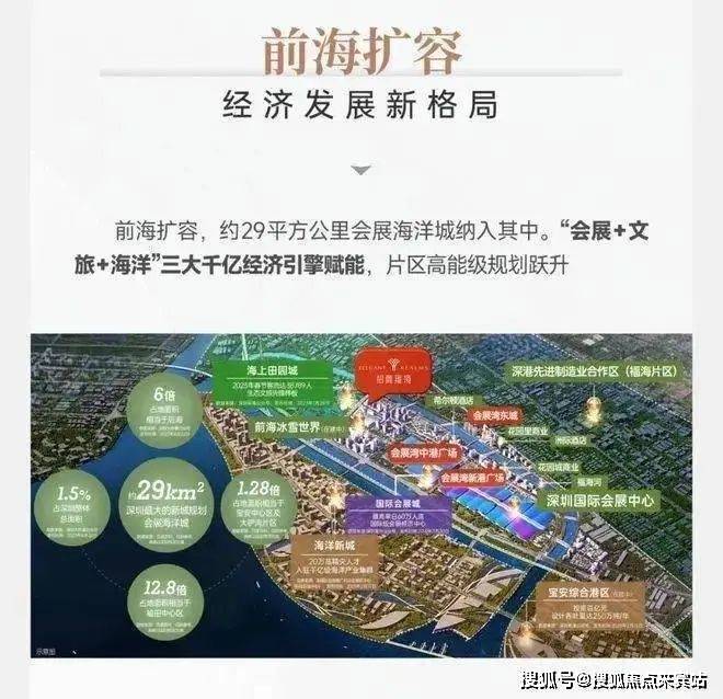 约29平方公里会展新城,湾区战略制高点,会展新城规划布局为“三城一港”,包括国际会展城、海洋新城、会展田园城和综合港区,将成为深圳在全球科技创新中心和海洋中心城市地位的重要战略支撑。