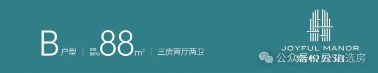88㎡的3房2厅2卫,设计的是经典竖厅格局,客厅3.6米开间,LDKB一体化设计,三开间朝南,动静分区,3个卧室分别做到了主卧14.26㎡/次卧7.81㎡/次卧5.83㎡(包含墙体飘窗),客厅出8.67㎡的大阳台,U型厨房4.95平,公卫三段式干湿分离,得房率约86-90%(包含赠送),正南朝向。